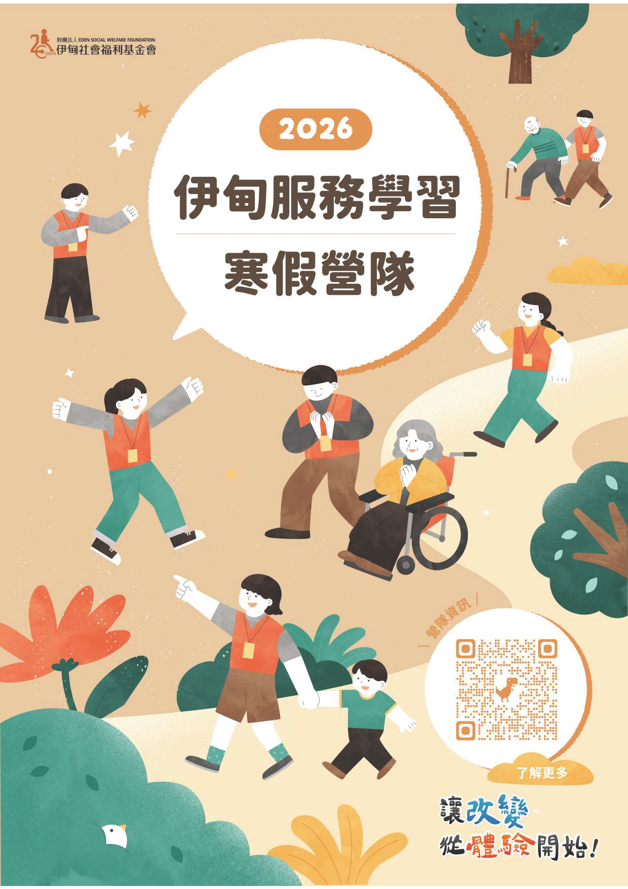轉知伊甸社會福利基金會「2026伊甸服務學習寒假營隊」招募及報名,歡迎同學踴躍參加!