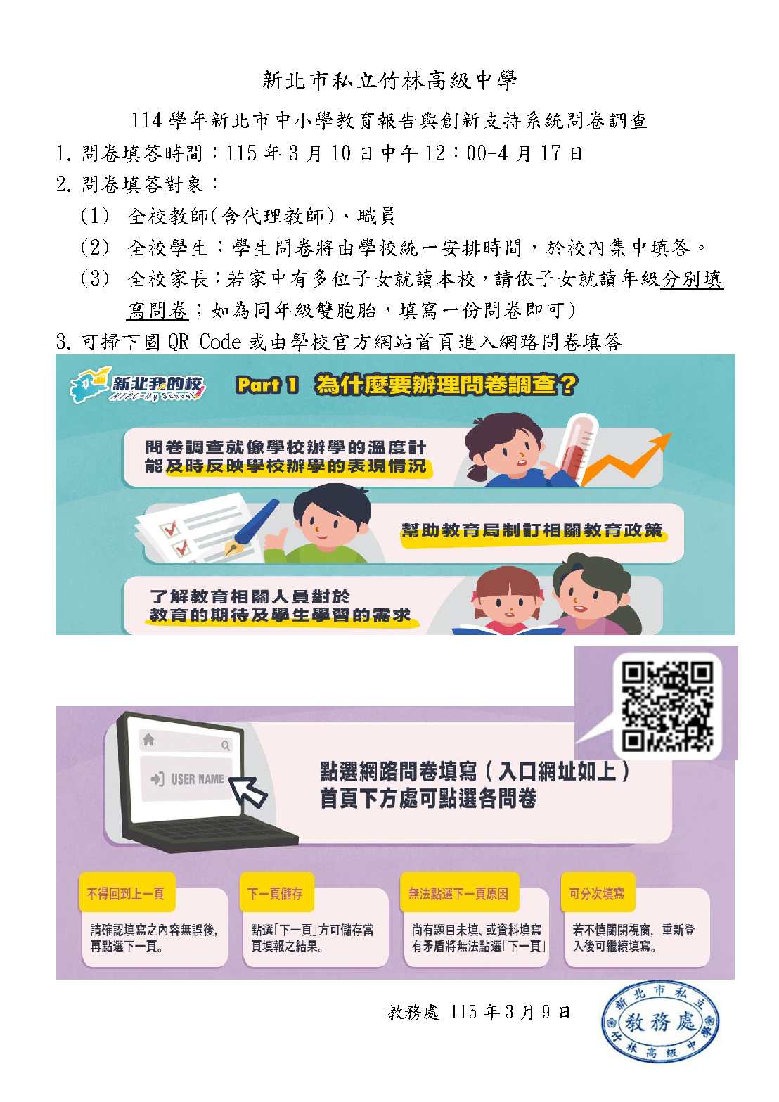 " " 📢114學年新北市中小學教育報告與創新支持系統問卷調查 - 新北市私立竹林高級中學 " "