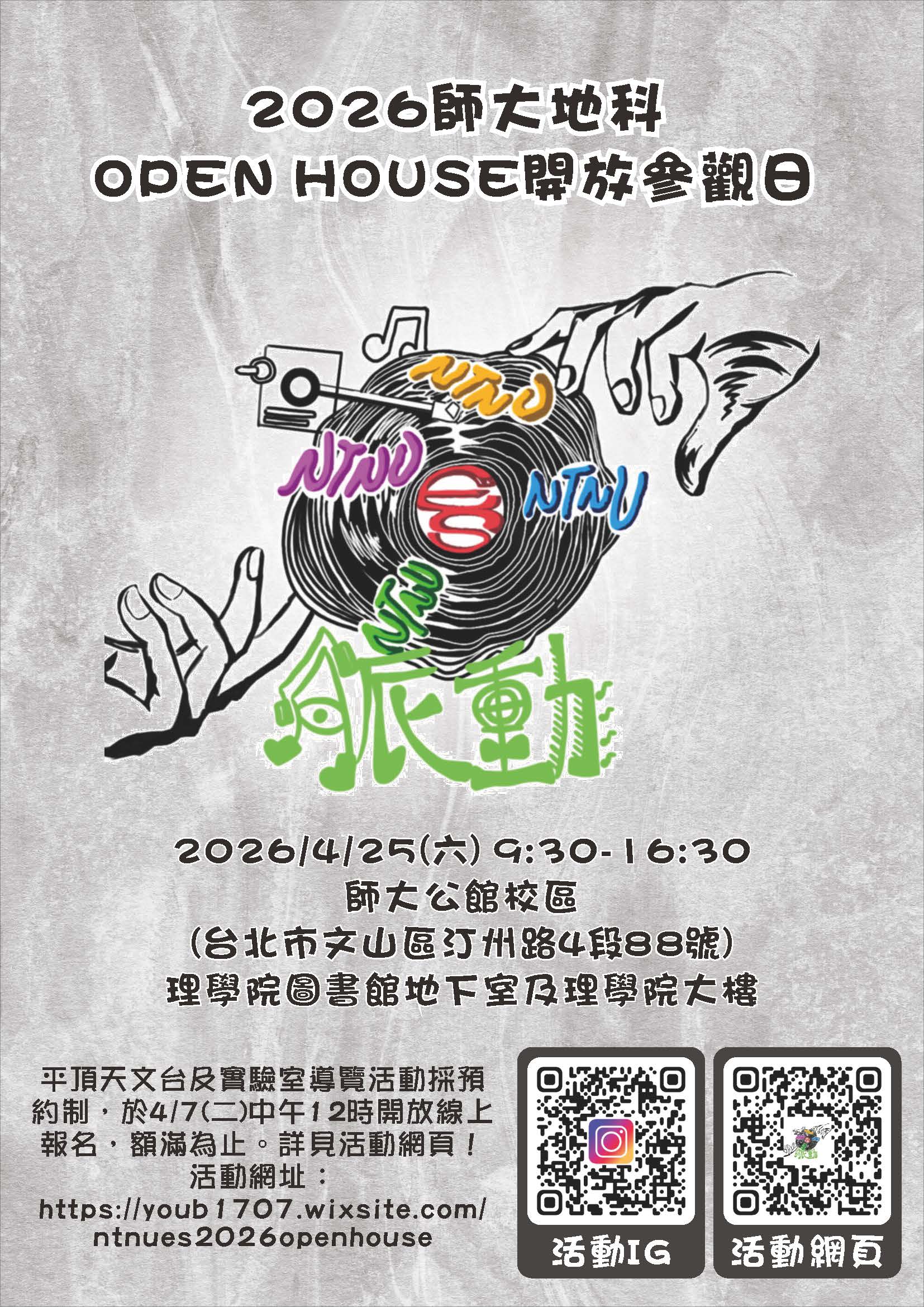 國立臺灣師範大學地球科學系訂於本(115)年4月25日(星期六)於本校公館校區舉辦「2026師大地科開放參觀日」