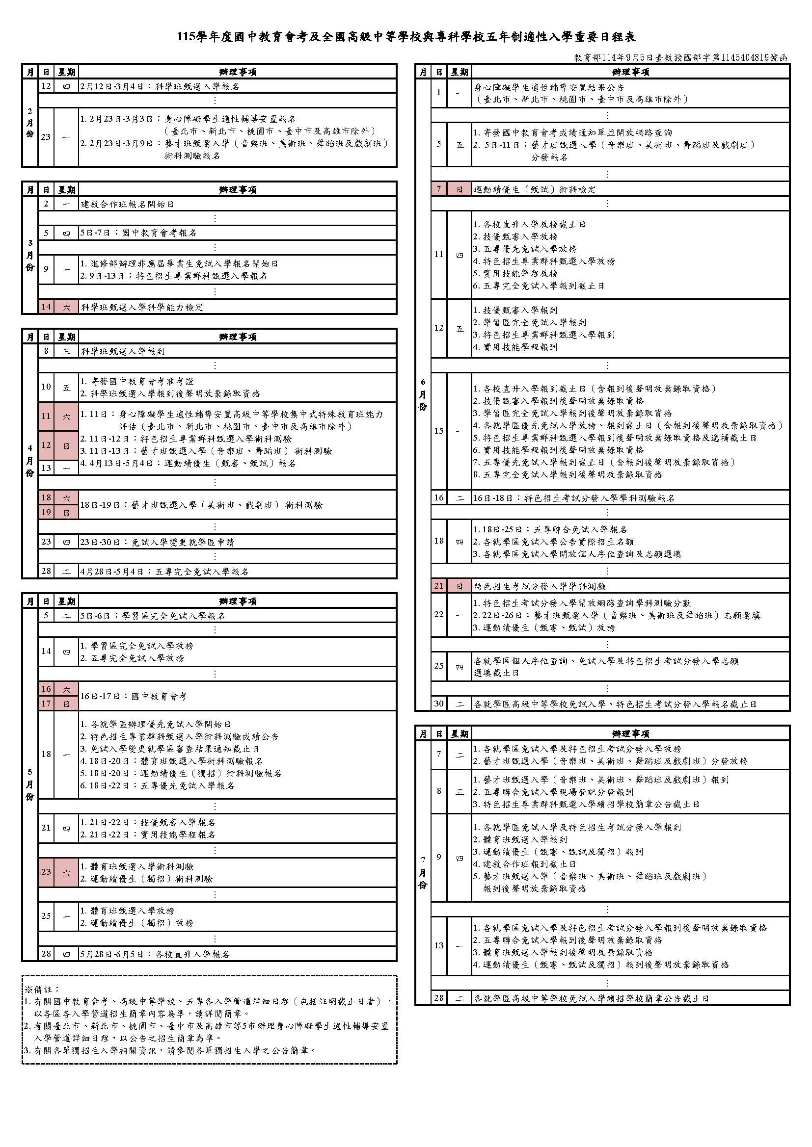 適性入學重要日程表